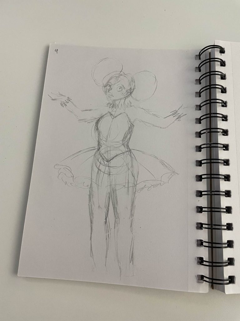 I had a few basic ideas for her and I felt that this design was a solid start for her development, I decided to make her an antagonist character so when I design her further I can use shape theory to make her more dramatic.