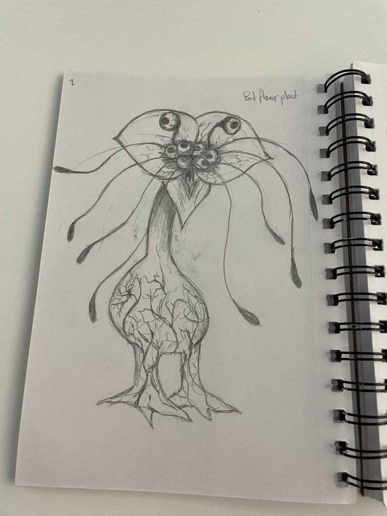 Started off with a few sketches of characters where I got inspiration from picking random topics such as plants and historical events.