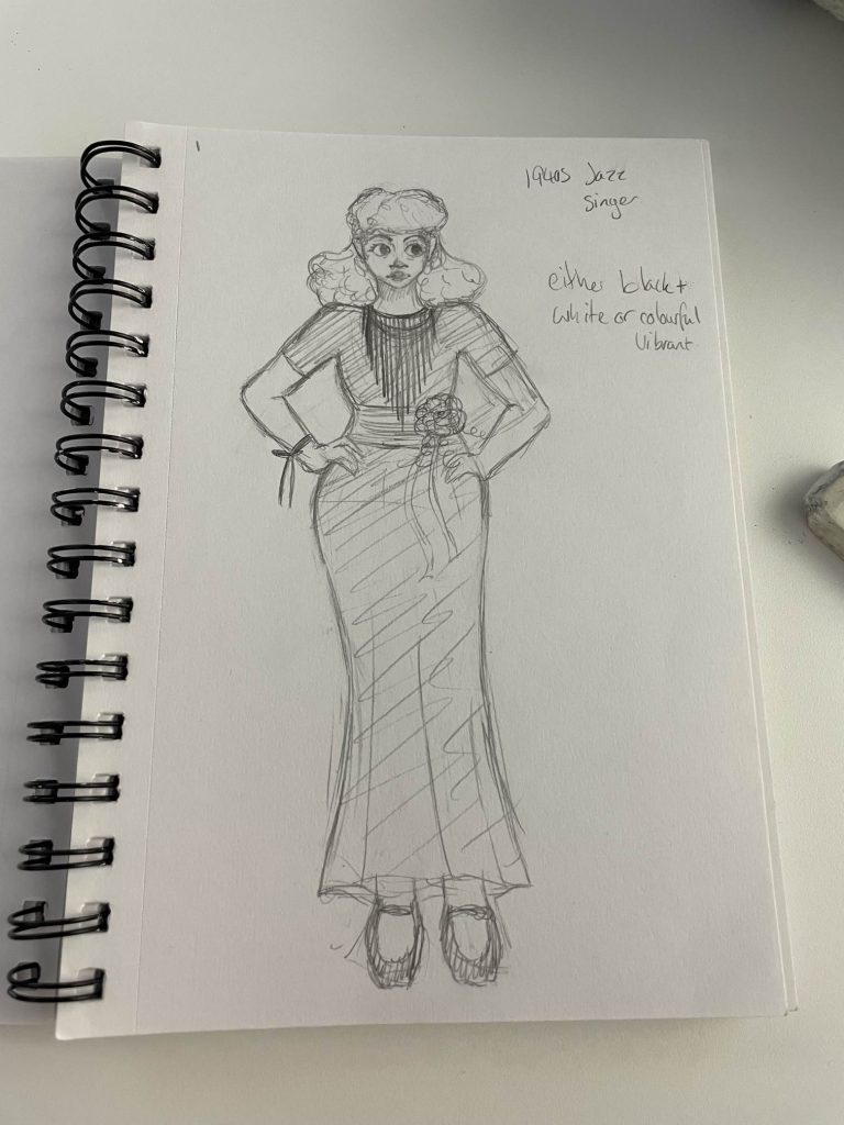 • One person said to look into a specific timeframe as between the 1920s and 1950s were quite varied in fashion and in performers. I decided to research more into the 1920s and add lots of details into her design like the hair and accessories.