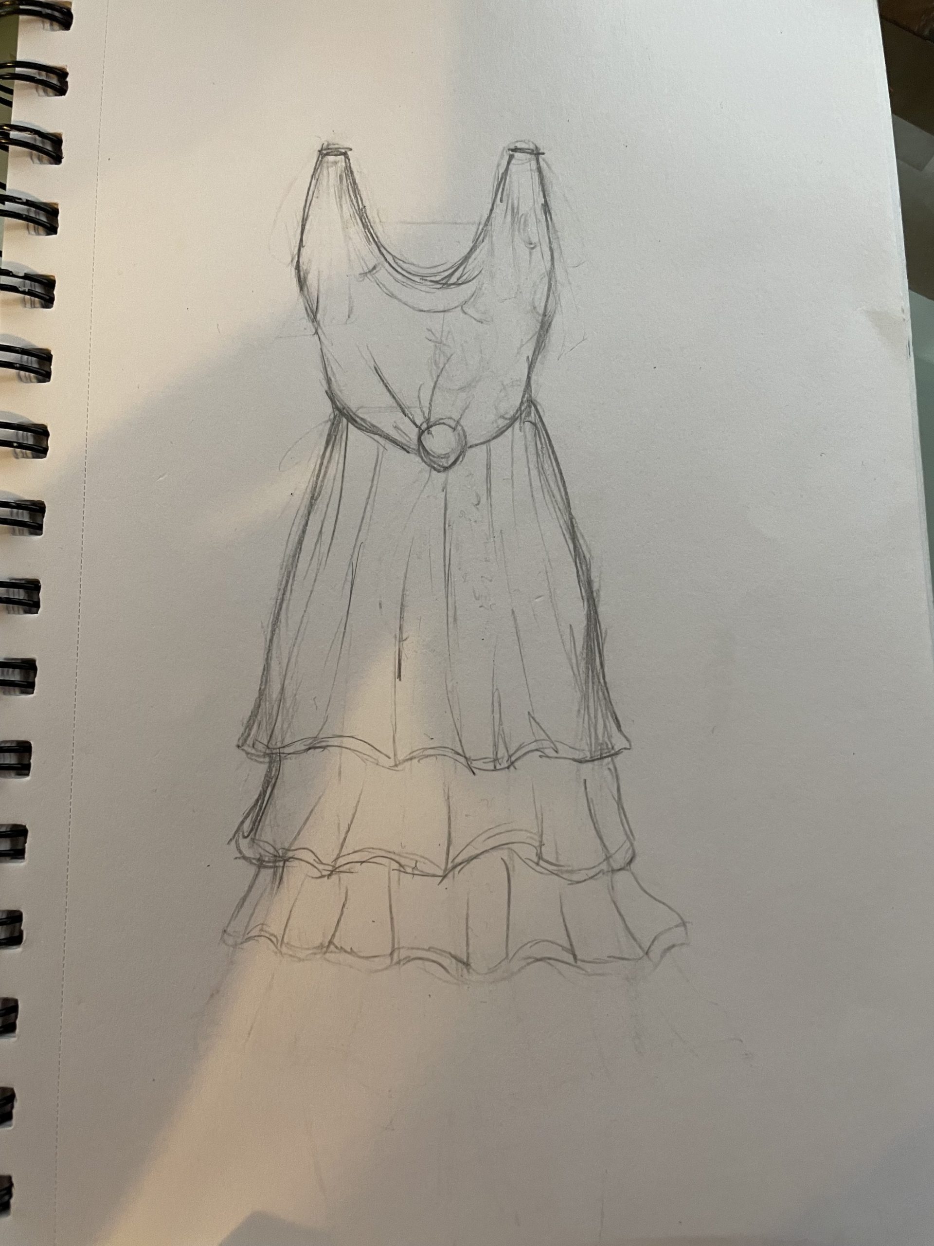 I used the image on the right to help me when detailing the ruffles on the design and I wanted to incorperate some pattern into the top of the dress.