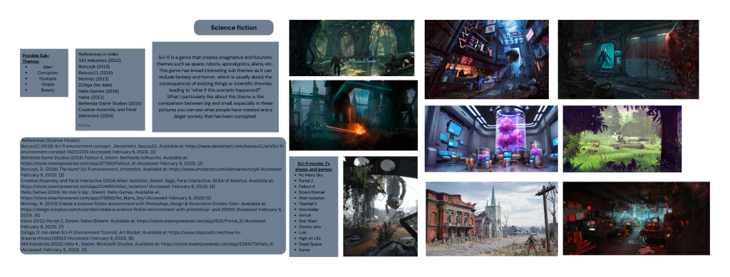 I have broken them down into each section with reference images of what I feel represented the themes and looked into the definitions and different fictional literature, movies, tv shows, and games from these genres and the potential sub-themes which are below: