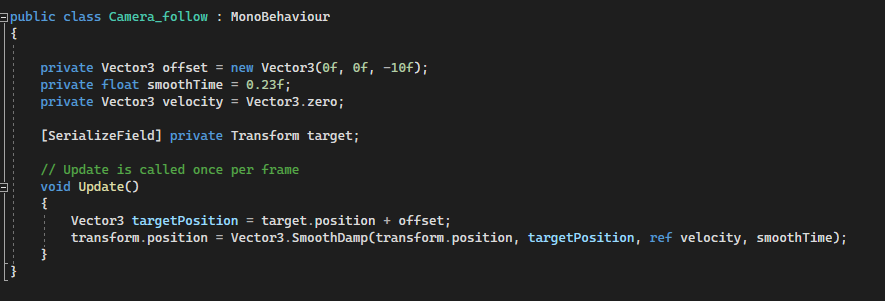 I used Vector3 to target a specific object and applied this to the camera. I was able to set the target by grabbing the player from the hierarchy and placing them in what to target. This gave a smooth camera movement.